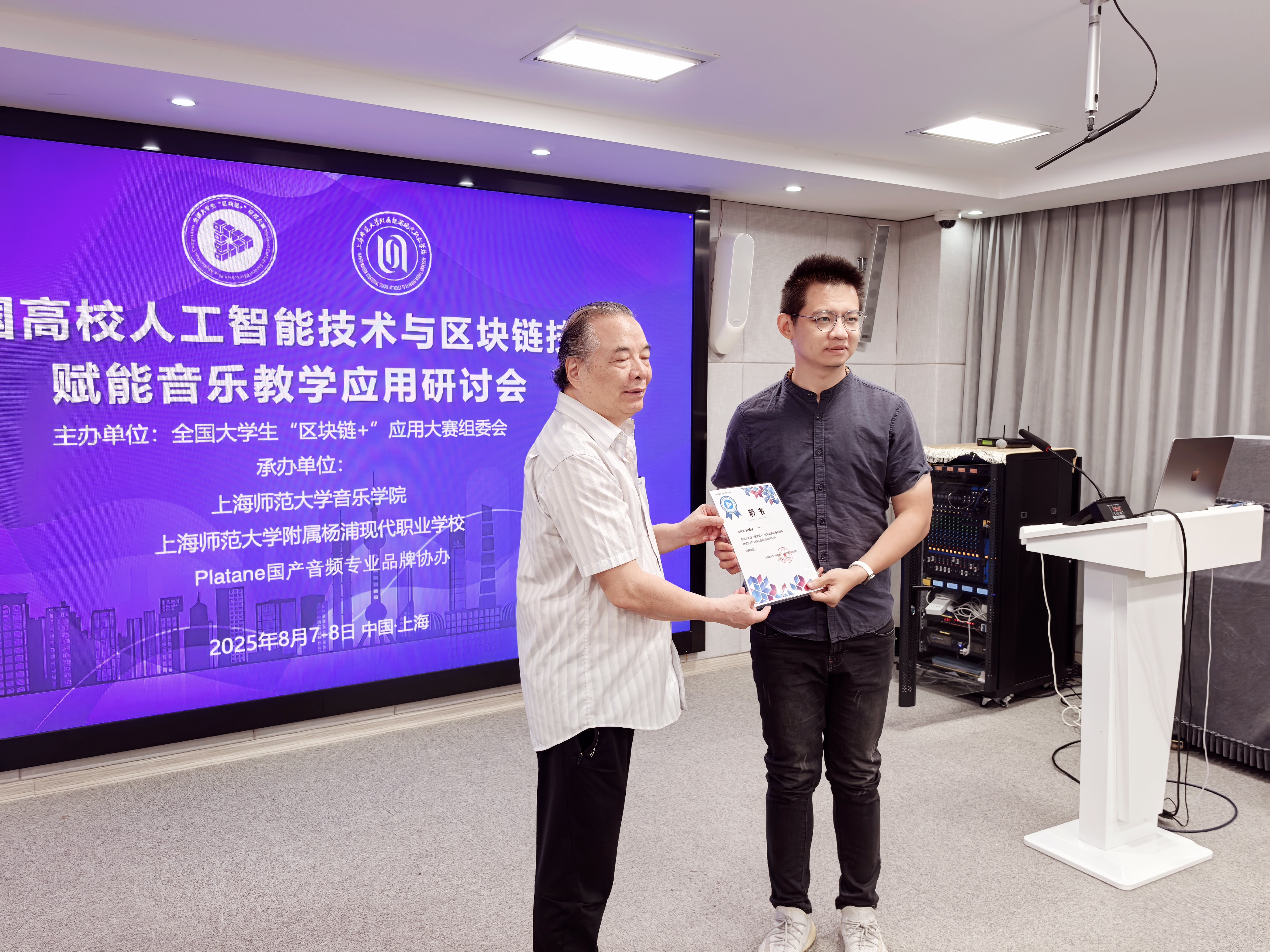 2025年8月7日至8日,“全国高校人工智能技术与区块链技术赋能音乐教学应用研讨会”在上海师范大学附属杨浦现代职业学校本溪校区隆重举行。本次会议由全国大学生“区块链+”应用大赛组委会主办,中山大学软件工程学院、东华大学计算机科学与技术学院、上海师范大学音乐学院联合承办,上海师范大学附属杨浦现代职业学校、乐王(上海)文化发展股份有限公司等单位协办,以“推动新一代信息技术与音乐高等教育深度融合”为主题,吸引了来自全国高校音乐、人工智能领域的专家、骨干教师及企业代表50余人参会,共同探讨技术赋能音乐教学的创新路径。